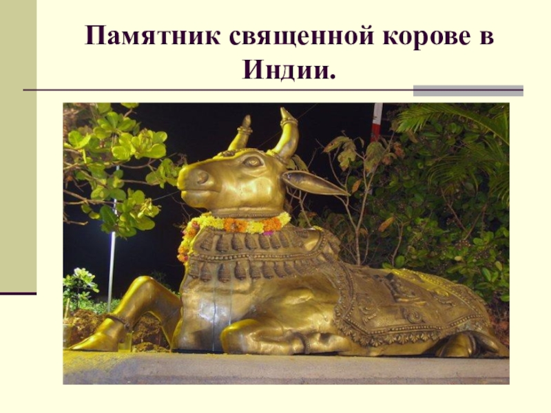 Слайд 39Памятник священной корове в Индии.
