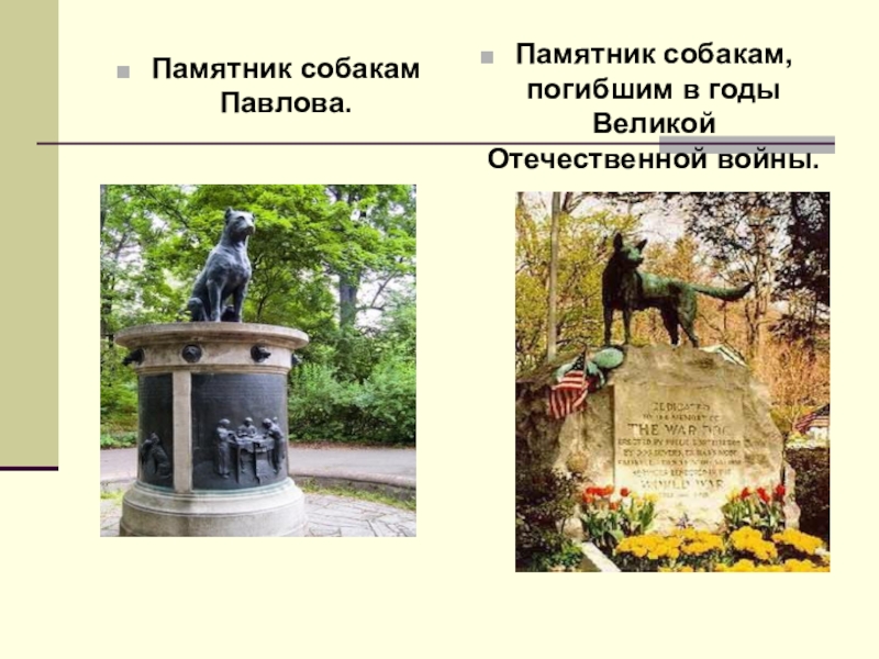Слайд 33Памятники собакам.