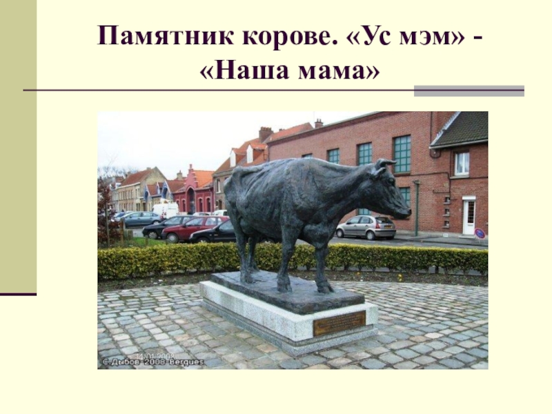 Слайд 40Памятник корове. «Ус мэм» - «Наша мама»