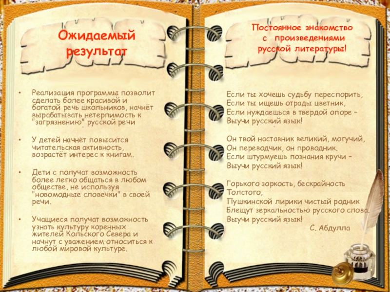 Чистый, красивый язык – это оружие в борьбе за знания. Если каждый из нас будет хорошо владеть родным языком, то мы сможем четко и точно излагать свои мысли.