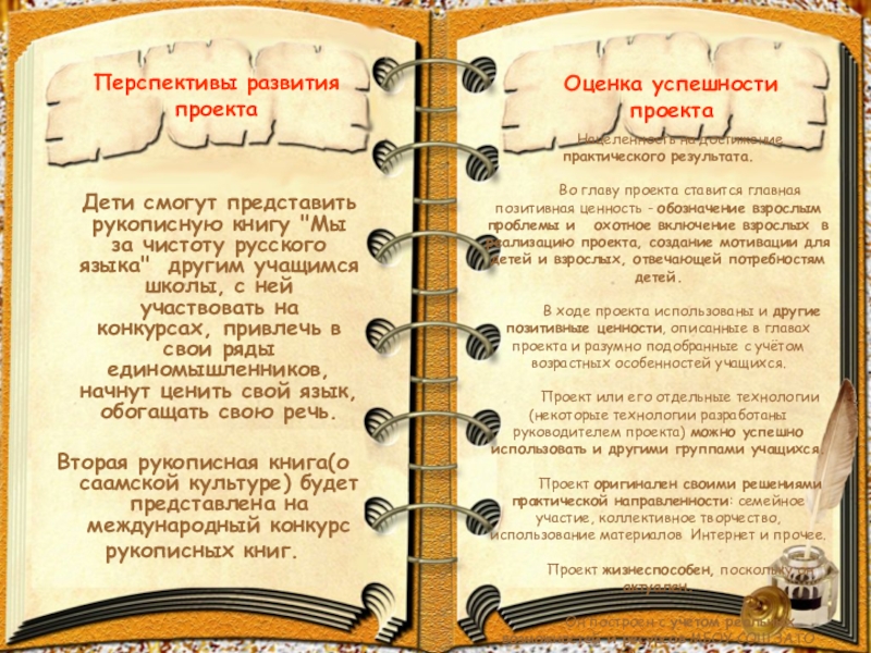 Проект или его отдельные технологии (некоторые технологии разработаны руководителем проекта) можно успешно использовать и другими группами учащихся.