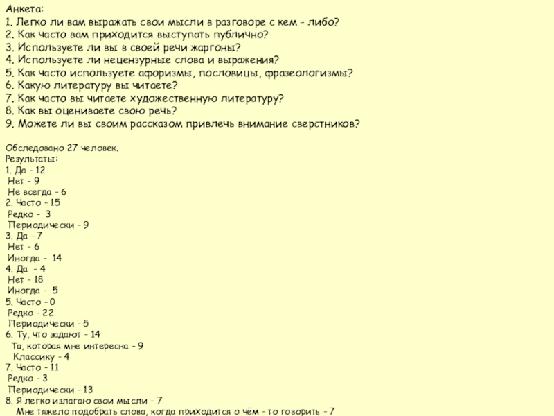 1. Легко ли вам выражать свои мысли в разговоре с кем - либо?