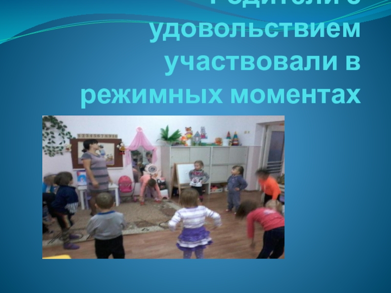 Слайд 6 Родители с удовольствием участвовали в режимных моментах