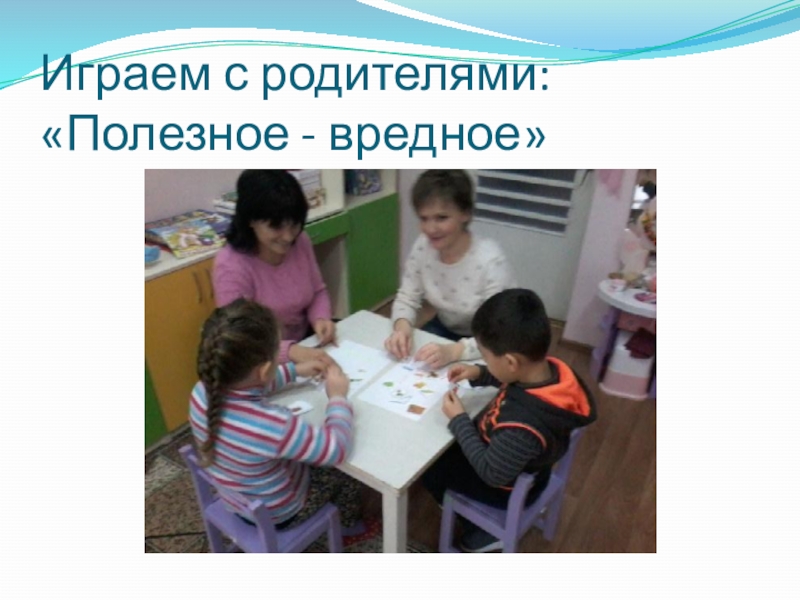 Слайд 3Играем с родителями: «Полезное - вредное»