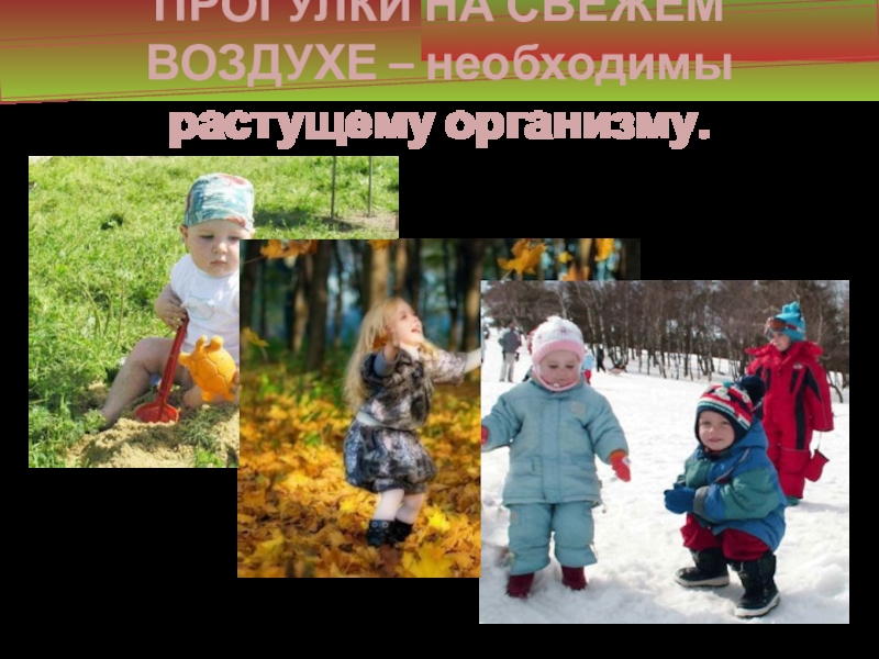 Слайд 12ПРОГУЛКИ НА СВЕЖЕМ ВОЗДУХЕ – необходимы растущему организму.