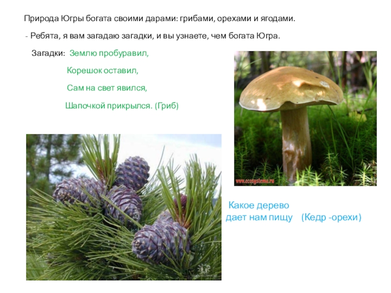 Слайд 17Природа Югры богата своими дарами: грибами, орехами и ягодами.