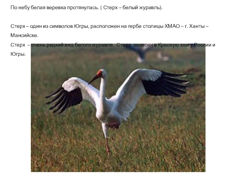 По небу белая веревка протянулась. ( Стерх – белый журавль).