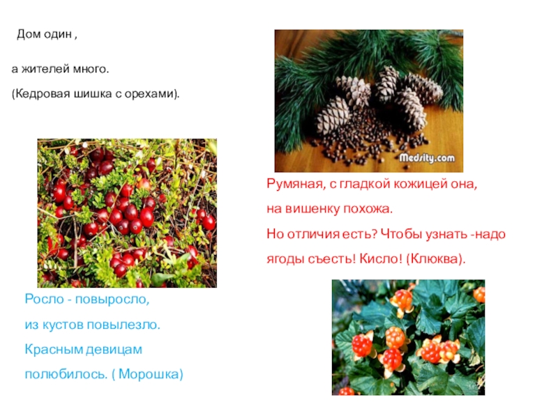 Но отличия есть? Чтобы узнать -надо ягоды съесть! Кисло! (Клюква).
