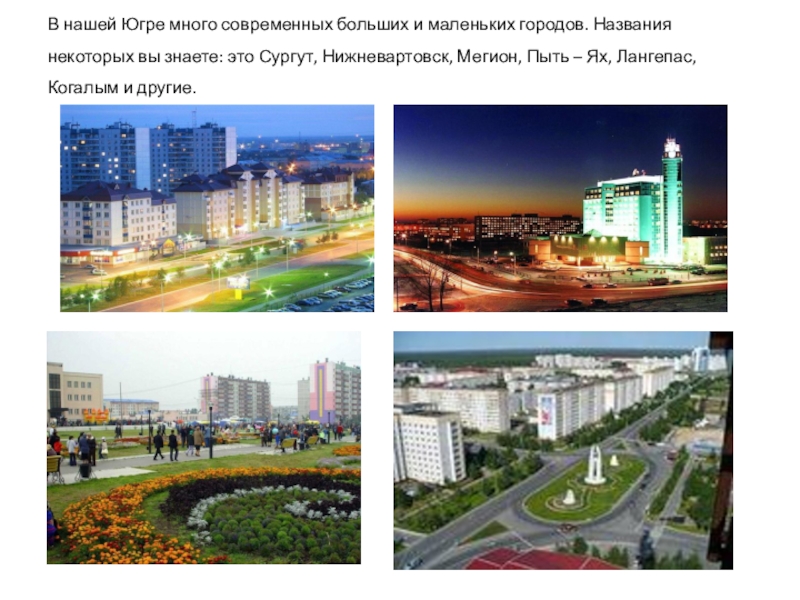 Слайд 11В нашей Югре много современных больших и маленьких городов. Названия некоторых