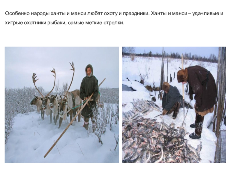 Слайд 33Особенно народы ханты и манси любят охоту и праздники. Ханты и