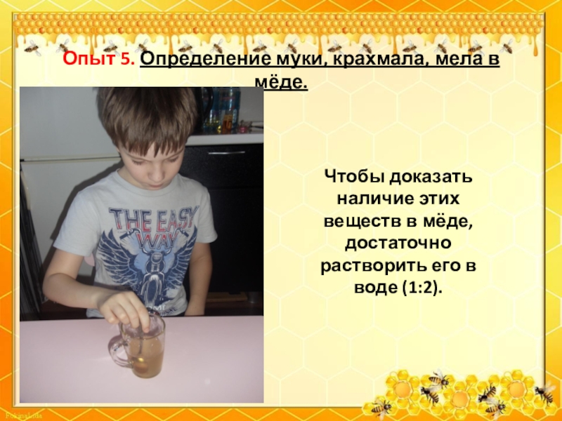 5. Провести опыты по выявлению фальсификации мёда.