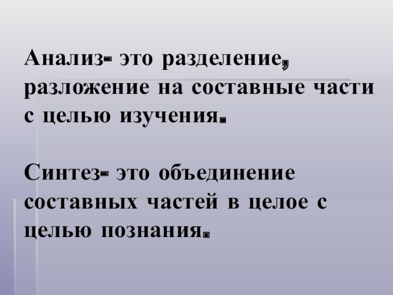 Слайд 16Анализ- это разделение, разложение на составные части с целью изучения.
