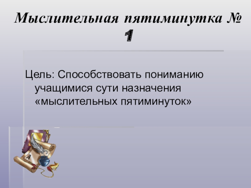 Цель: Способствовать пониманию учащимися сути назначения «мыслительных пятиминуток»