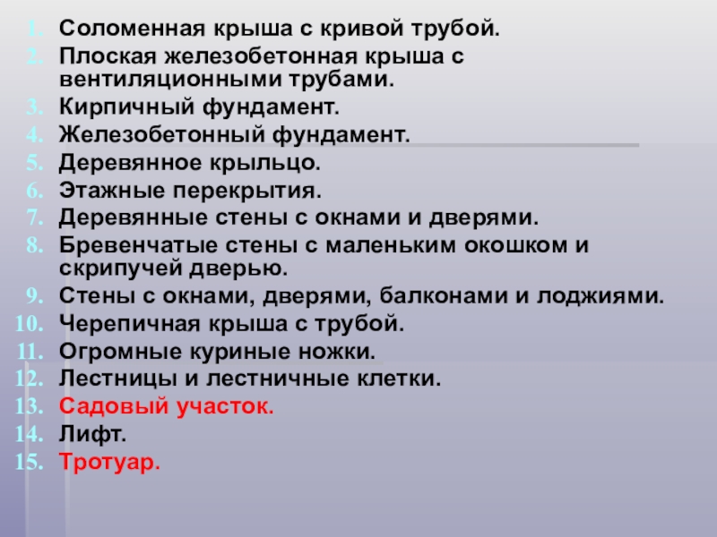 Слайд 23Соломенная крыша с кривой трубой.