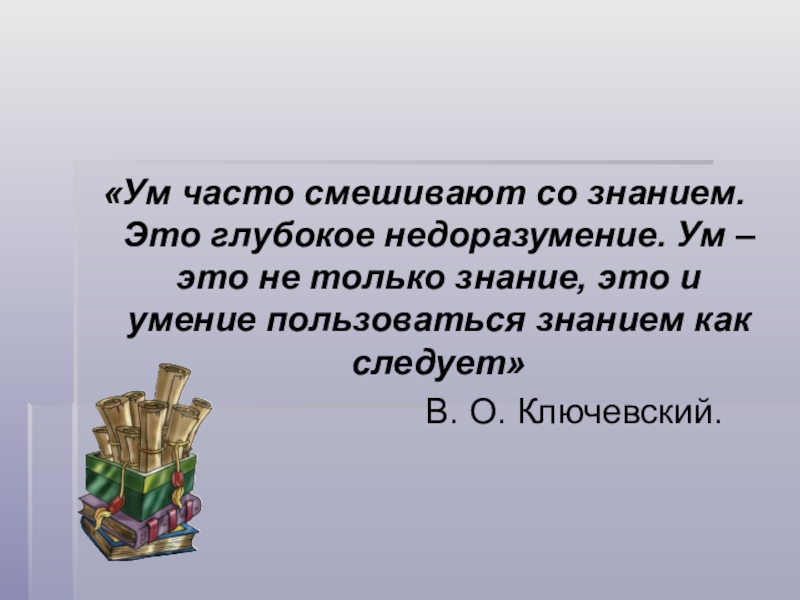 Слайд 25«Ум часто смешивают со знанием. Это глубокое недоразумение. Ум – это