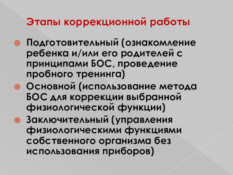 Слайд 10Этапы коррекционной работы