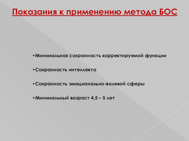Слайд 11Показания к применению метода БОС