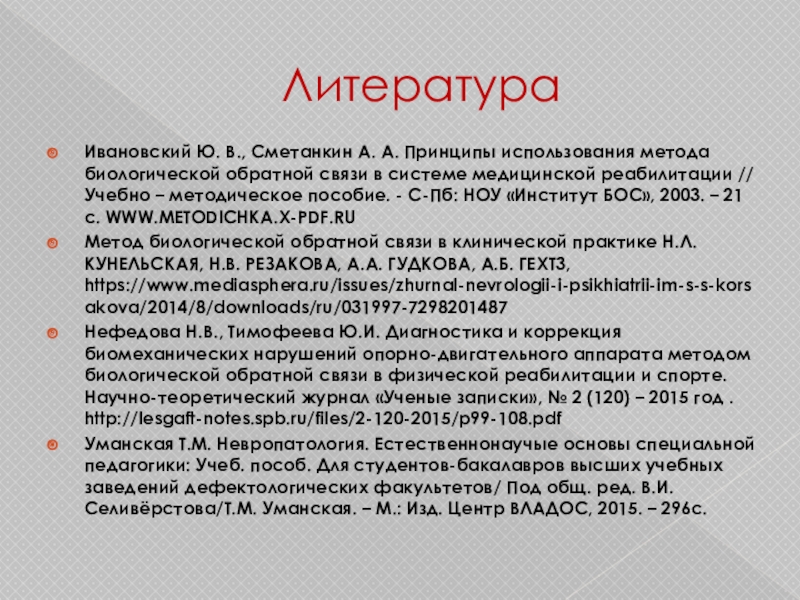 Метод биологической обратной связи в клинической практике Н.Л. КУНЕЛЬСКАЯ, Н.В. РЕЗАКОВА, А.А. ГУДКОВА, А.Б. ГЕХТ3, https://www.mediasphera.ru/issues/zhurnal-nevrologii-i-psikhiatrii-im-s-s-korsakova/2014/8/downloads/ru/031997-7298201487