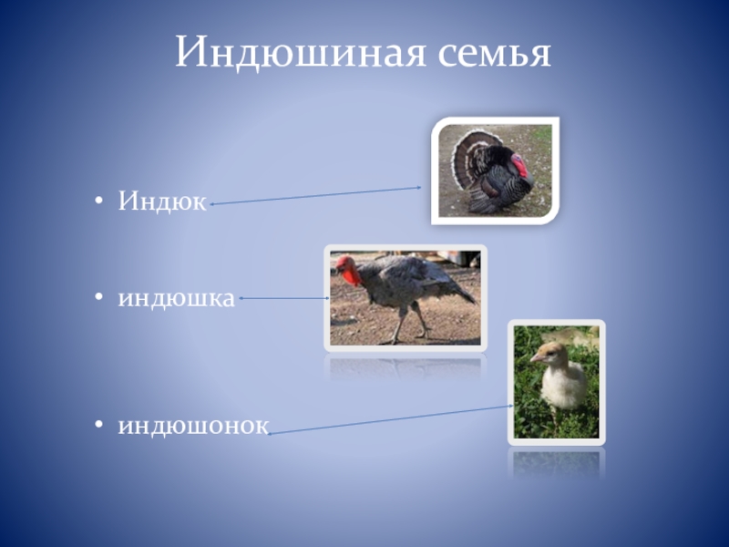 Индюшиная семьяИндюкиндюшкаиндюшонок