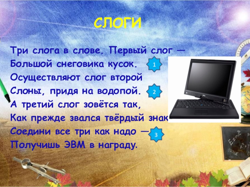 Это сайт презентаций, где можно хранить и обмениваться своими презентациями, докладами, проектами, шаблонами в формате PowerPoint с другими пользователями. Мы помогаем школьникам, студентам, учителям, преподавателям хранить и обмениваться учебными материалами.