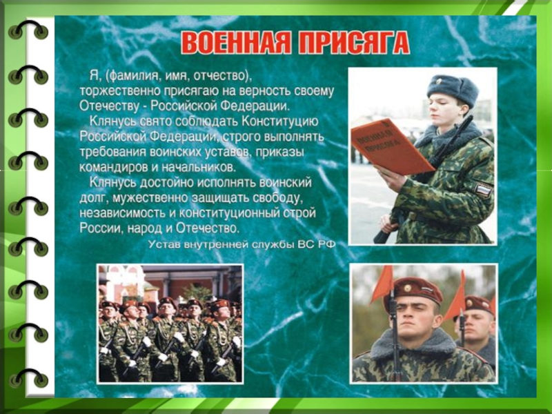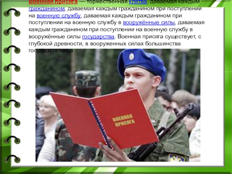 Военная присяга — торжественная клятва, даваемая каждым гражданином, даваемая каждым гражданином при