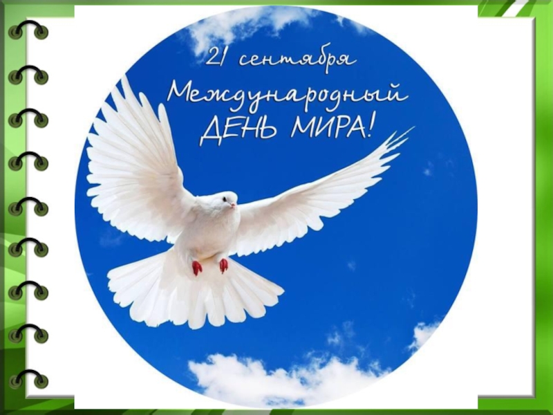 Слайд 4Международный день мира отмечается 21 сентябряМеждународный день мира отмечается 21 сентября