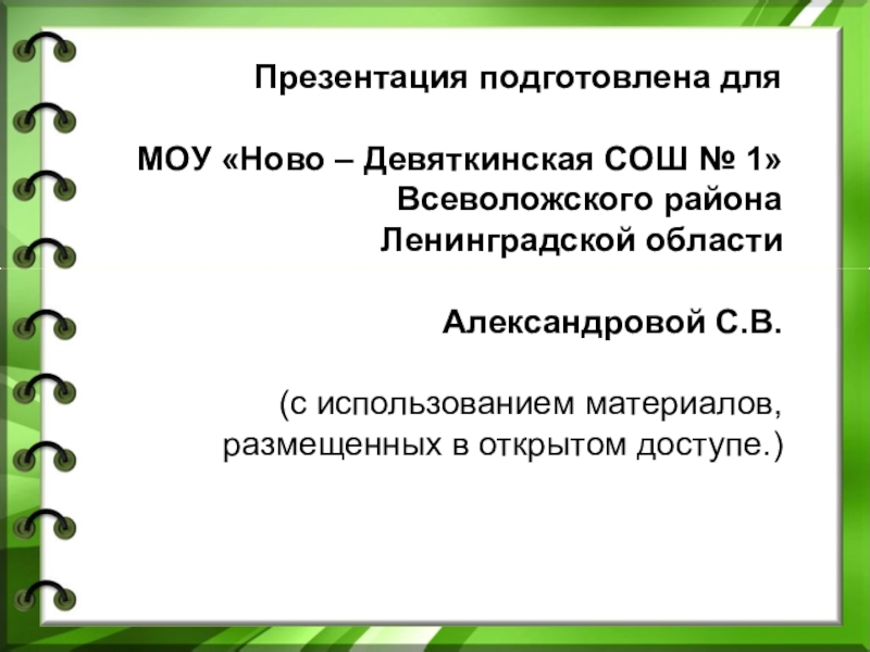 Презентация подготовлена дляМОУ «Ново – Девяткинская СОШ № 1»Всеволожского районаЛенинградской областиАлександровой С.В. (с использованием материалов, размещенных в