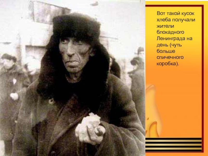 Вот такой кусок хлеба получали жители блокадного Ленинграда на день (чуть больше спичечного коробка).