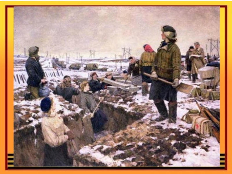 и дети. Все, кто остались в тылу рыли окопы, заменили своих мужчин у станков и в поле, шили теплые вещи для фронта.