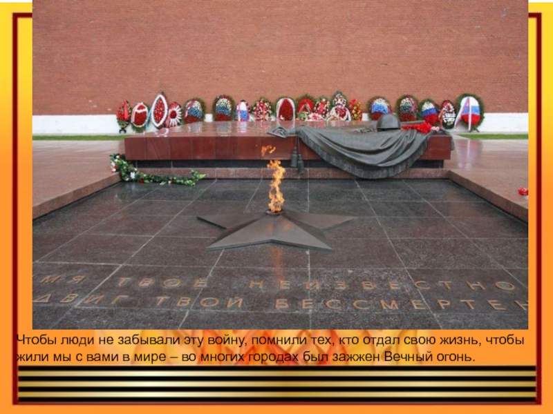 жизнь, чтобы жили мы с вами в мире – во многих городах был зажжен Вечный огонь.