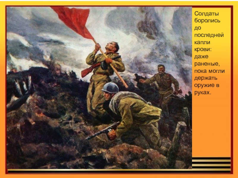 Солдаты боролись до последней капли крови: даже раненые, пока могли держать оружие в руках.