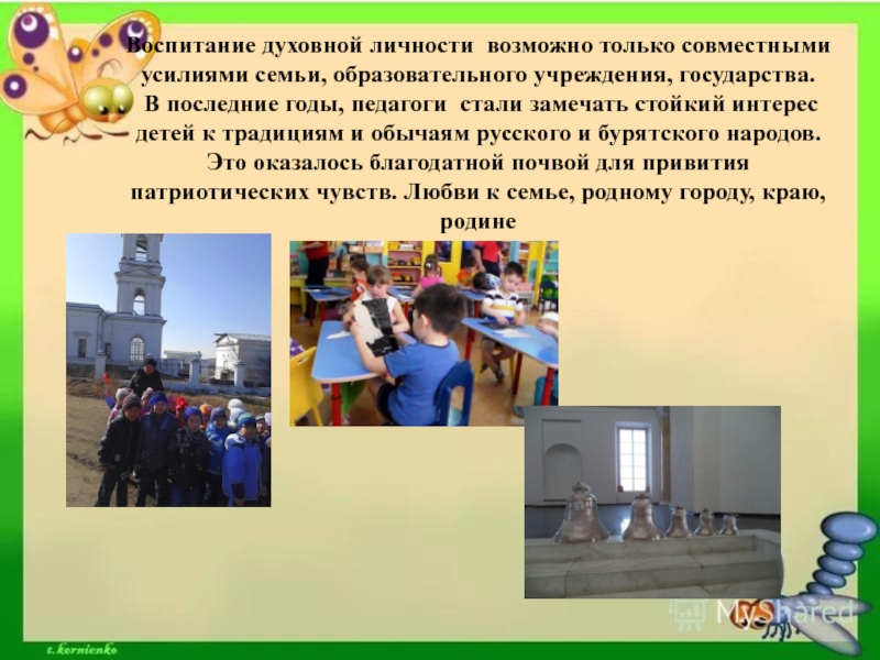 В последние годы, педагоги стали замечать стойкий интерес детей к традициям и обычаям русского и бурятского народов. Это оказалось благодатной почвой для привития патриотических чувств. Любви к семье, родному городу, краю, родине