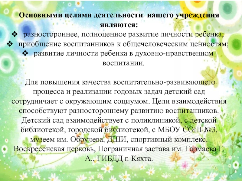 Слайд 4Основными целями деятельности нашего учреждения являются: