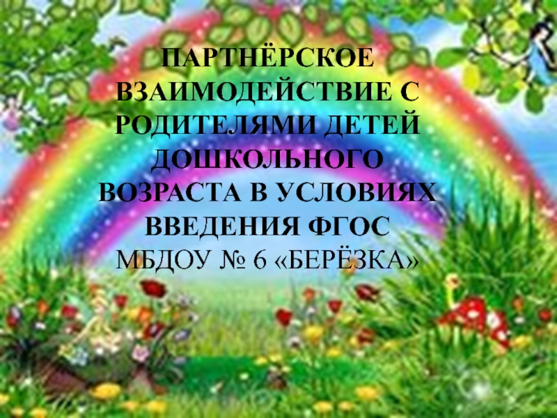 Слайд 2ПАРТНЁРСКОЕ ВЗАИМОДЕЙСТВИЕ С РОДИТЕЛЯМИ ДЕТЕЙ ДОШКОЛЬНОГО ВОЗРАСТА В УСЛОВИЯХ ВВЕДЕНИЯ ФГОС