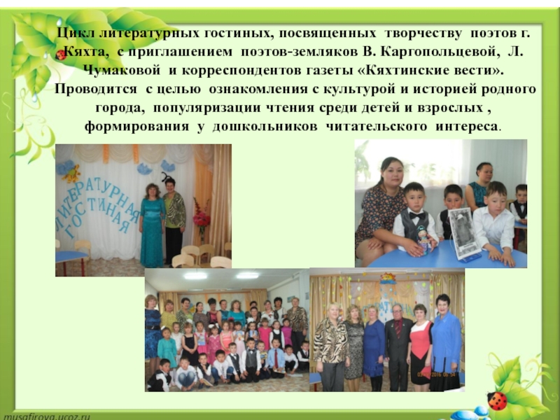 Слайд 10Цикл литературных гостиных, посвященных творчеству поэтов г.Кяхта, с приглашением поэтов-земляков В.