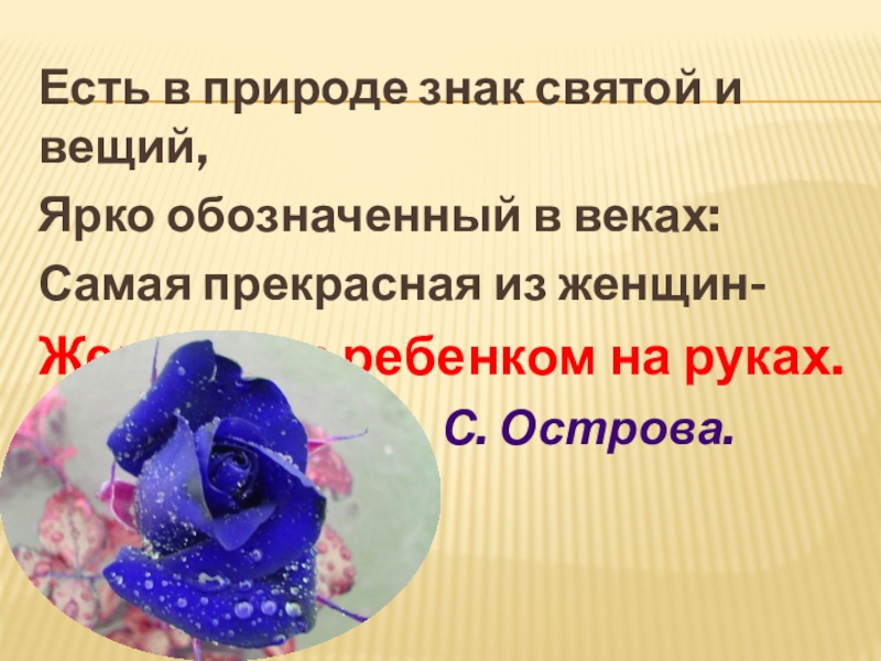 Есть в природе знак святой и вещий,Ярко обозначенный в веках:Самая прекрасная из женщин-Женщина с ребенком на руках.