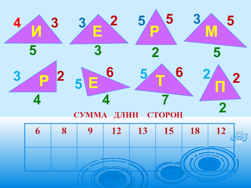 2) 13 + 15 + 10 = 38 (см) –таков периметр треугольника
