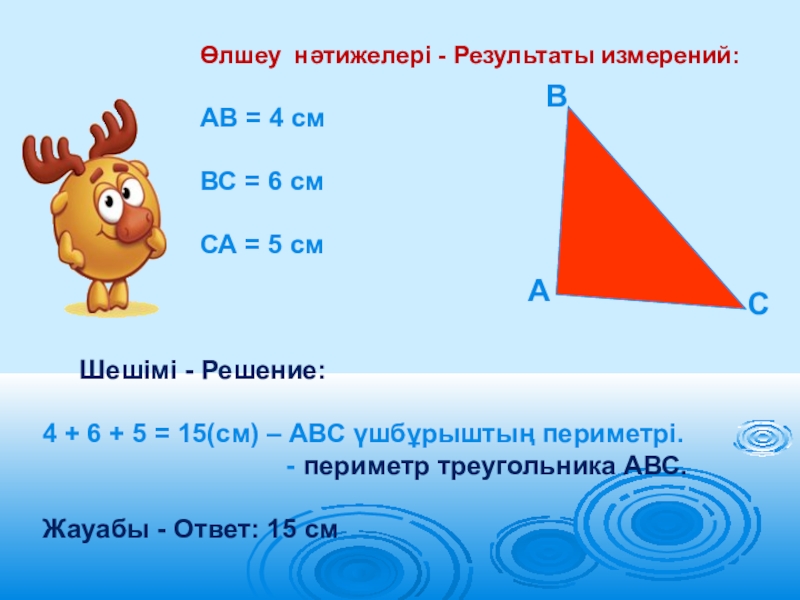 4 + 6 + 5 = 15(см) – АВС үшбұрыштың периметрі.