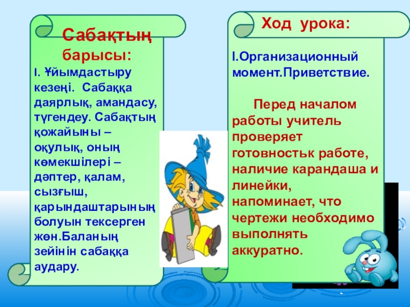 Перед началом работы учитель проверяет готовностьк работе, наличие карандаша и линейки,