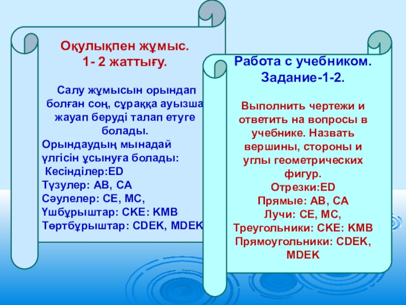 Выполнить чертежи и ответить на вопросы в учебнике. Назвать вершины, стороны и углы геометрических фигур.