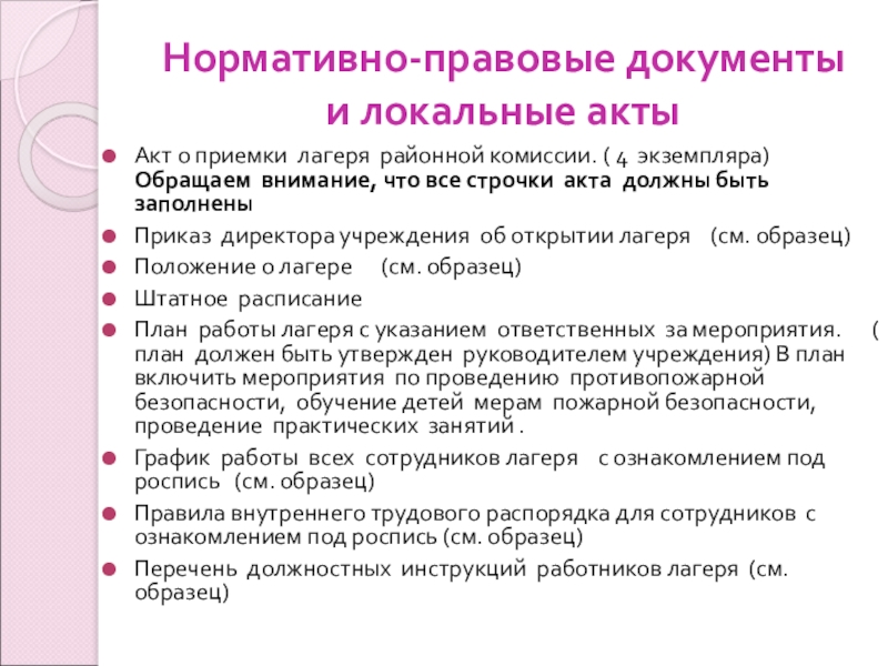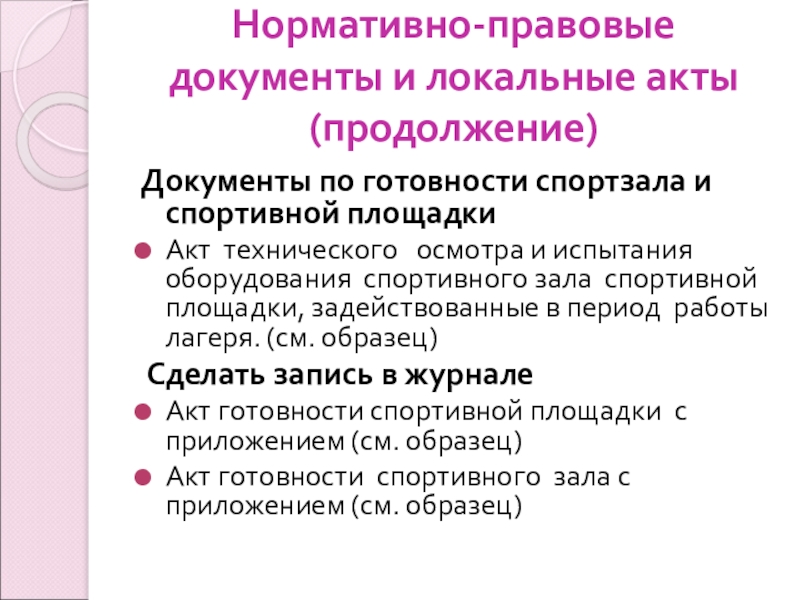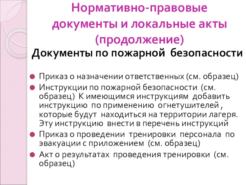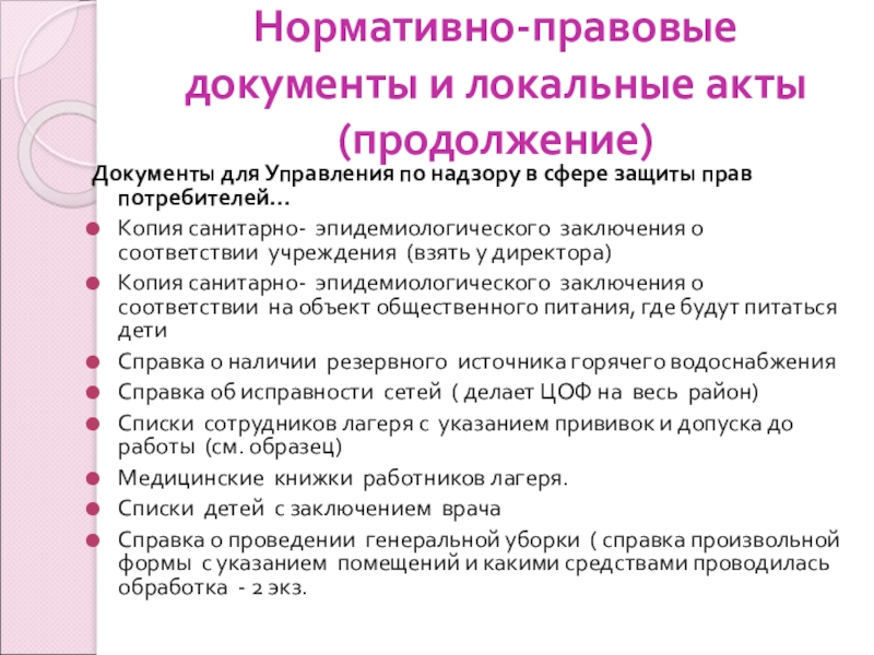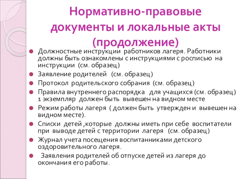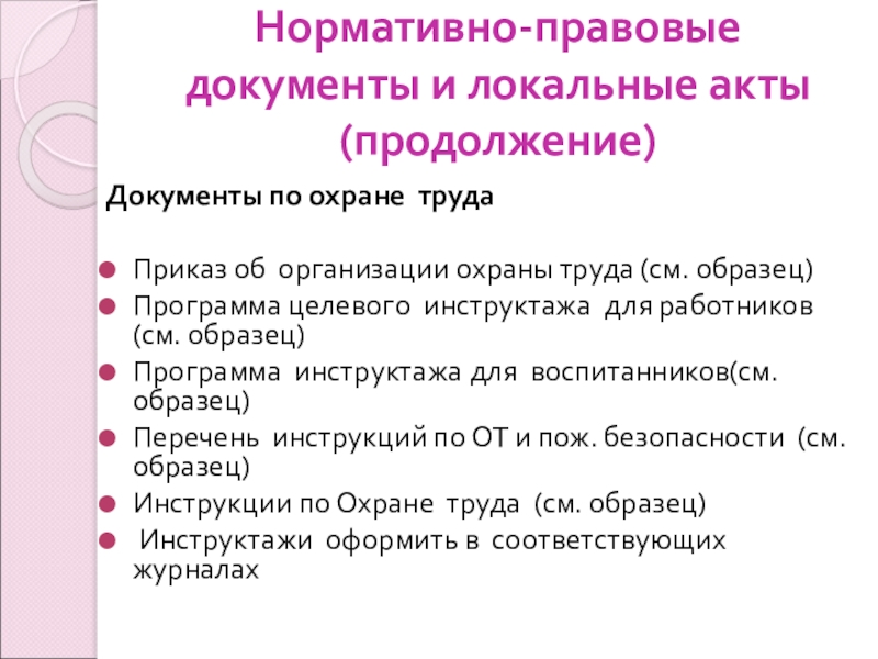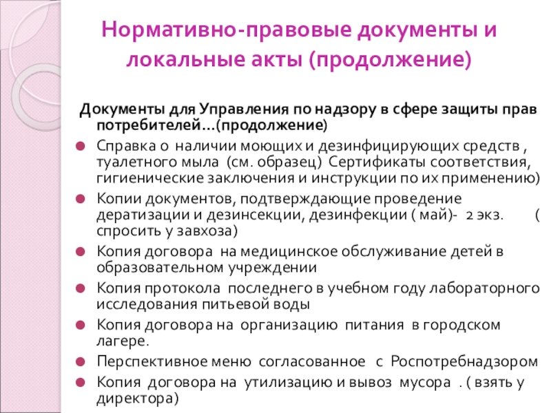 Слайд 8Нормативно-правовые документы и локальные акты (продолжение)
