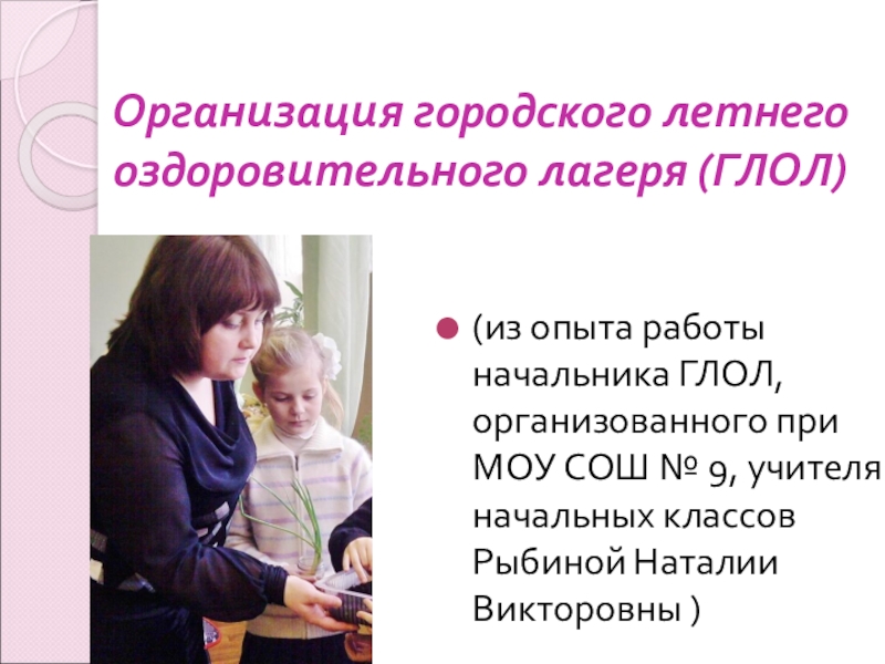 Слайд 2Организация городского летнего оздоровительного лагеря (ГЛОЛ)