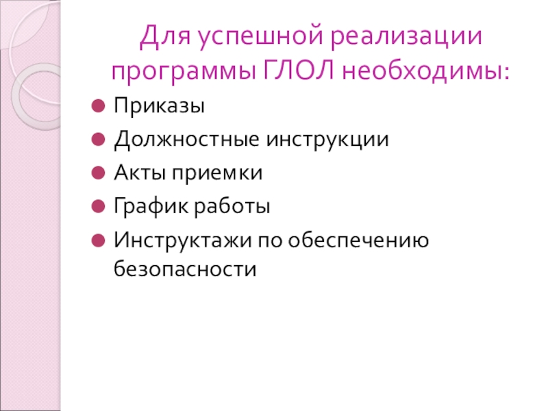 Слайд 25Для успешной реализации программы ГЛОЛ необходимы:
