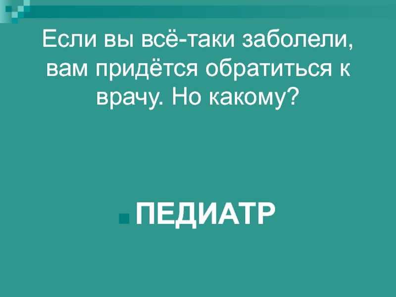 Слайд 56Если вы всё-таки заболели, вам придётся обратиться к врачу. Но какому?