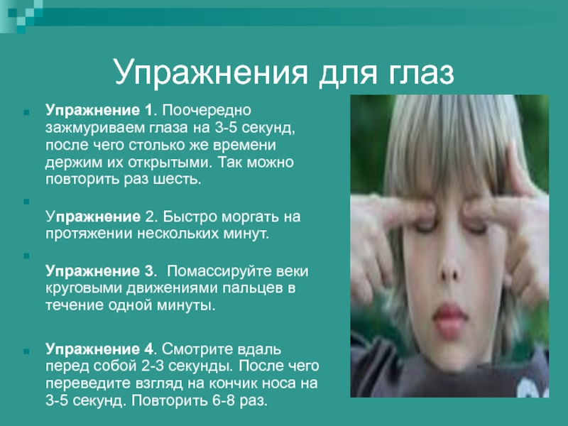 Слайд 47Упражнения для глаз