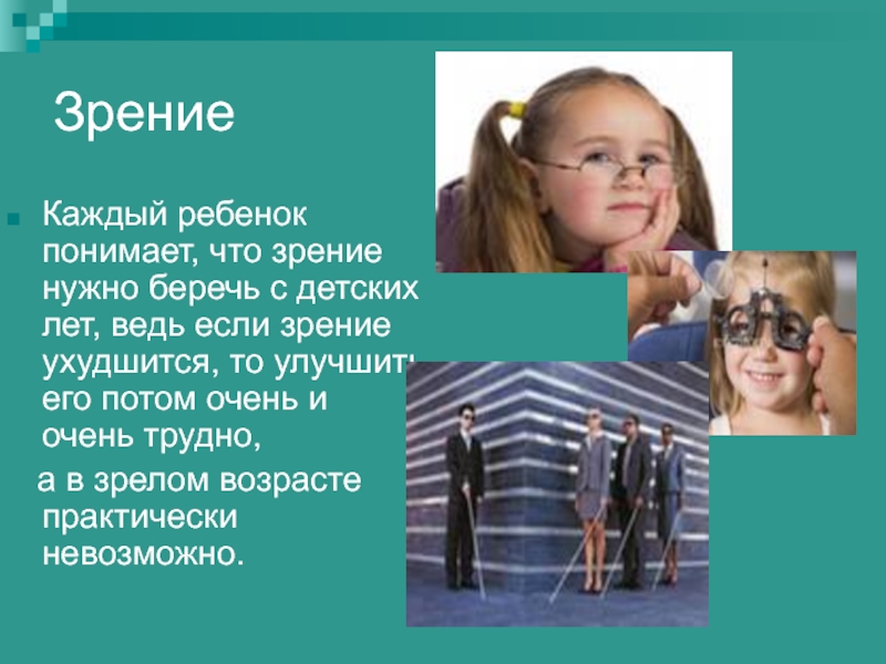 если зрение ухудшится, то улучшить его потом очень и очень трудно,