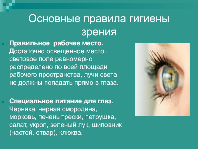 Слайд 46Основные правила гигиены зрения