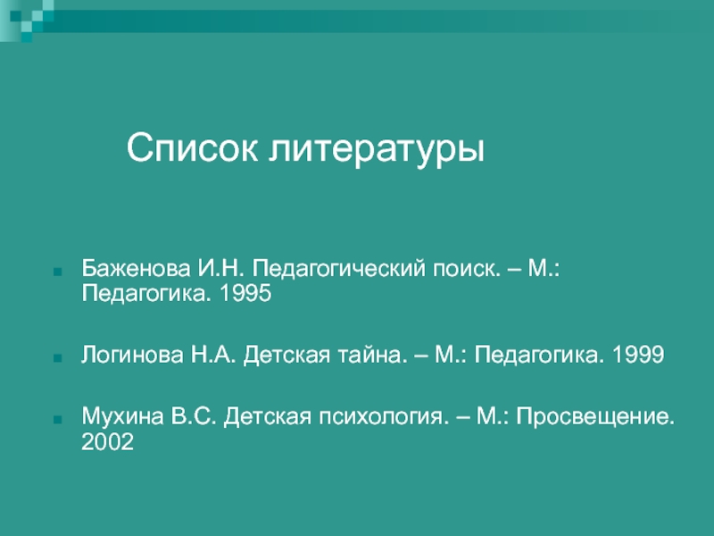 Мухина В.С. Детская психология. – М.: Просвещение. 2002