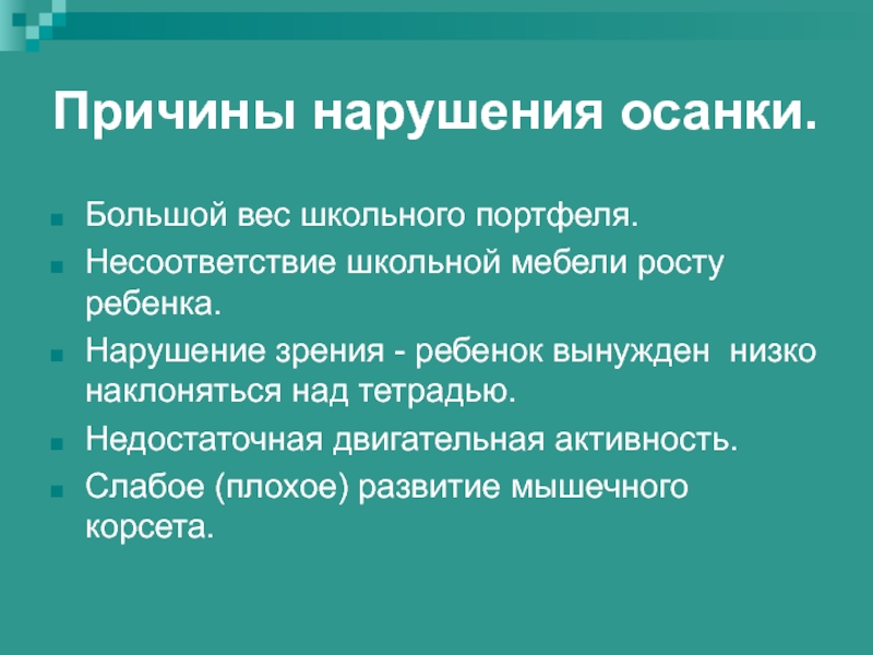 Слайд 51Причины нарушения осанки.
