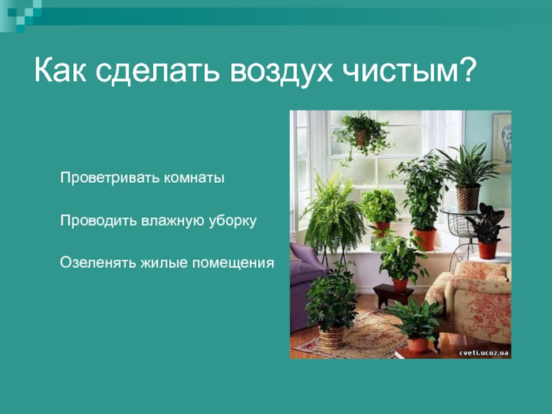 Слайд 33Как сделать воздух чистым?